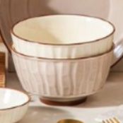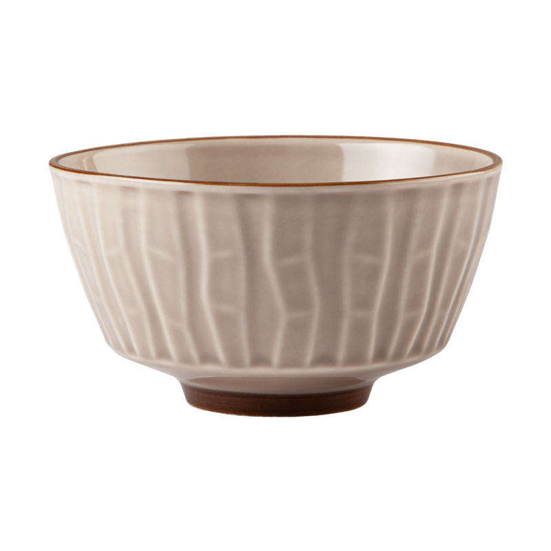 優雅な縦筋模様が施された上品な陶器の茶碗です。
