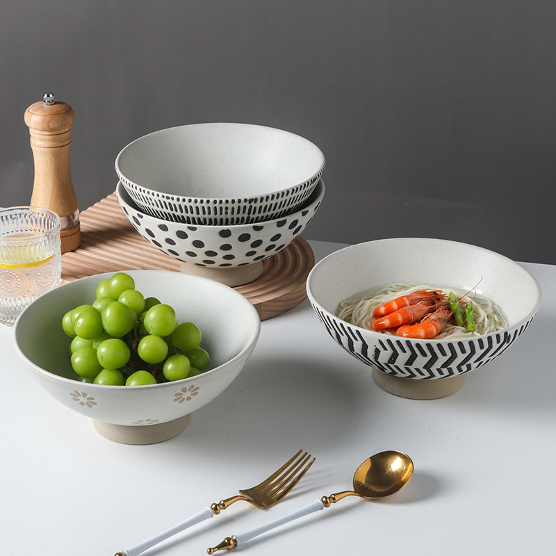 安定感のある高台付きで持ちやすく、丼物やサラダ、麺類など様々な用途でお使いいただけます。