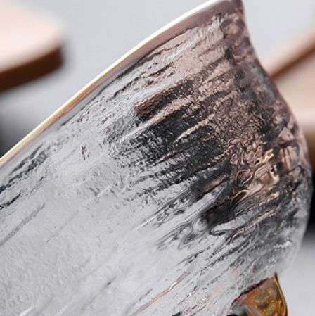 表面には槌目のような繊細な凹凸模様が施され、光を美しく反射します。