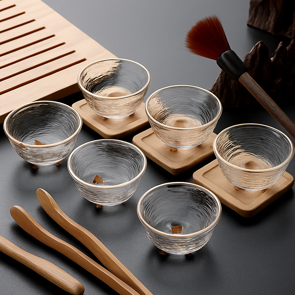 透明なガラス素材が涼やかな印象を醸し出し、日本茶や冷茶をお楽しみいただくのに最適です。