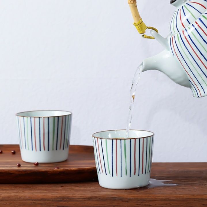 繊細な縦縞の文様が美しい湯呑み茶碗です。 側面全体に施された細やかな縦線が上品で洗練された印象を与え、日常の茶碗としても特別な席での使用にも適しています。 口縁部分には繊細な縁取りが施され、細部までこだわった仕上がりとなっております。 すっきりとした形状で持ちやすく、毎日のお茶の時間を豊かに彩ります。 来客時のおもてなしにも喜ばれる上質な湯呑み茶碗です。