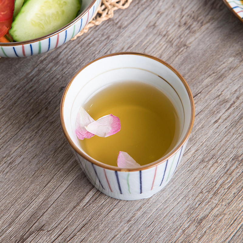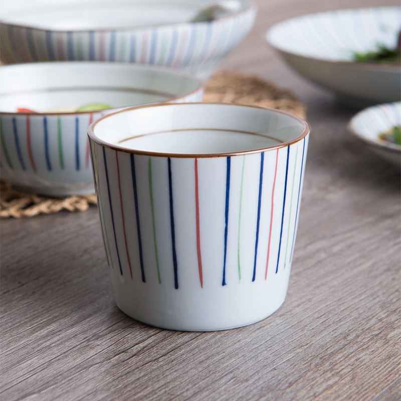繊細な縦縞の文様が美しい湯呑み茶碗です。