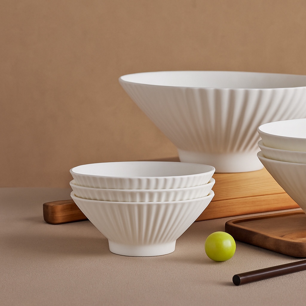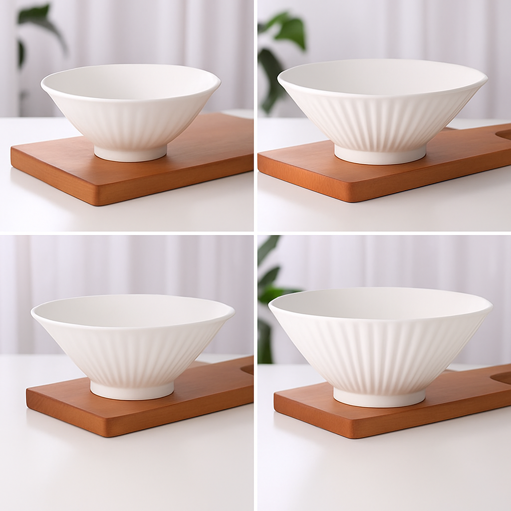 滑らかな磁器素材で作られており、ご飯茶碗としてはもちろん、麺類や丼物にも使える多用途な器です。