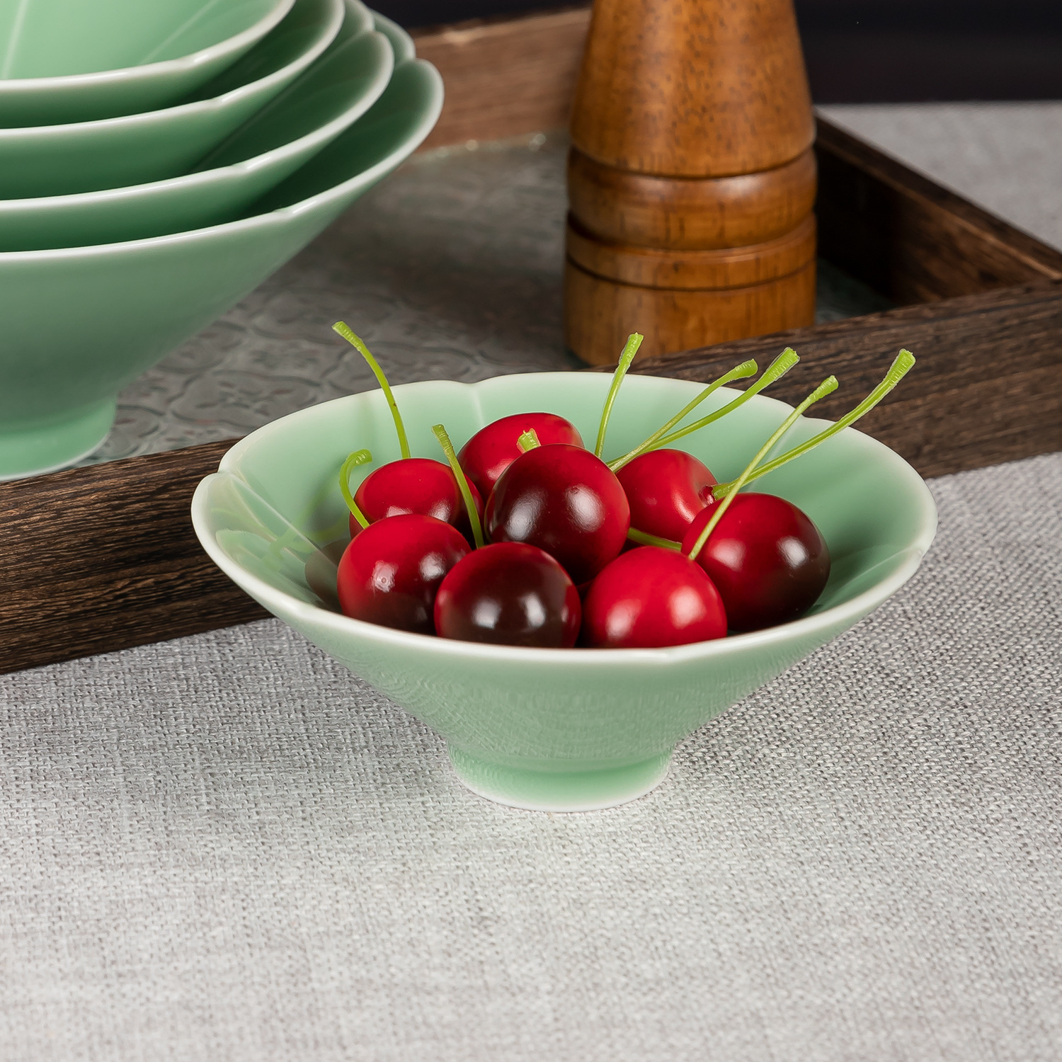 口縁部分を花弁のように仕立てた優雅な意匠は、食卓に華やかさを添えます。